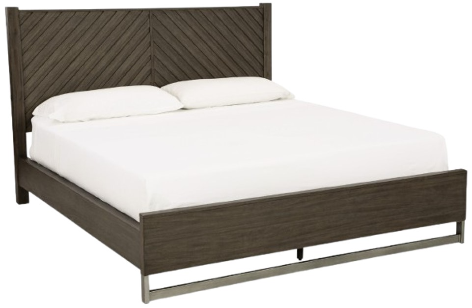 Clean lines lend sophistication and structure to this California king panel bed. Its complex rich grayish brown finish, slats set in a contemporary herringbone pattern, and low-profile footboard create visual interest and add to this bed's contemporary vibe. In addition, dual USB charging ports are conveniently built into each side of the headboard.Read More