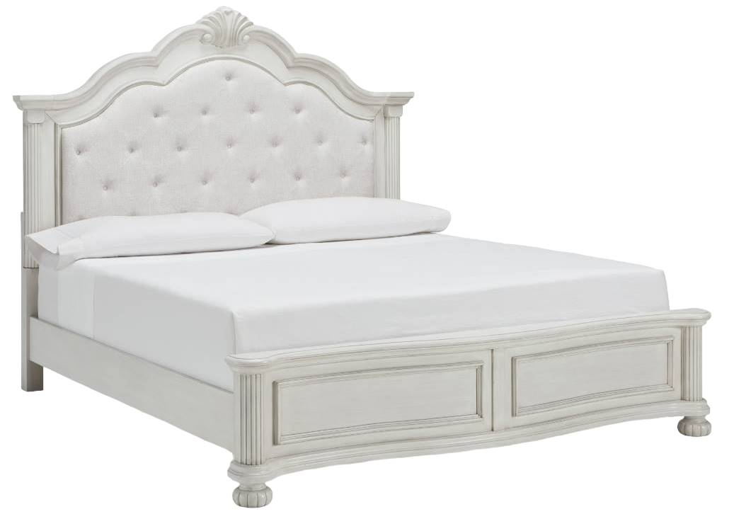 Benchcraft® Montelaine Antique White Queen Upholstered Panel Bed