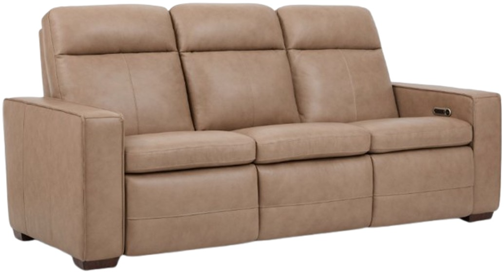 Upholstered in a desert tan Italian leather that is soft and durable for everyday use