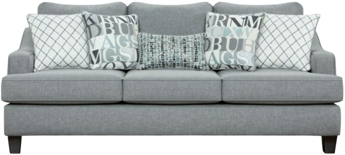 Bold print meets sophisticated design with the Macarena Cadet collection. Light living room colors of grey, white, and pale blue are accented with unique letter print and diamond motifs for a signature look. The tapered wooden legs, recessed sofa arms, and streamlined cushions of this set are a beautiful addition to a modern home.Read More