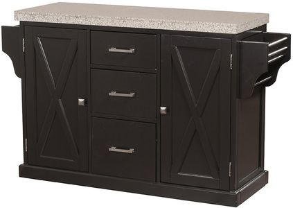 Casual style meets substantial functionality in the Hillsdale Furniture Brigham Kitchen Island. Featuring baseboard and flat panel molding with inlaid cross molding and minimalist hardware. This kitchen island table has all the charm of a country cottage. And it boasts two cabinets with adjustable shelves; three drawers with durable screw butt joints; as well as spice racks and towel rods at either end. The rich black finish and bespeckled gray tone granite top blend with any color palette. Organize your kitchen or dining room with the Brigham Kitchen Island. Assembly required.Read More