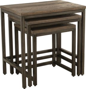 Hillsdale Furniture's Castille nesting tables are an easy blend into your décor. With a gently rustic flair, these three different sized tables can be nested to save space, and pulled out for use with guests when you are entertaining. Or, if the mood suits you, use them in three different places in your home to create a seamless transition with complimentary pieces throughout your home. Constructed with a heavy gauge distressed black pewter base, and thick distressed wood planked tops, these tables will provide years of enjoyment and function. No assembly required.