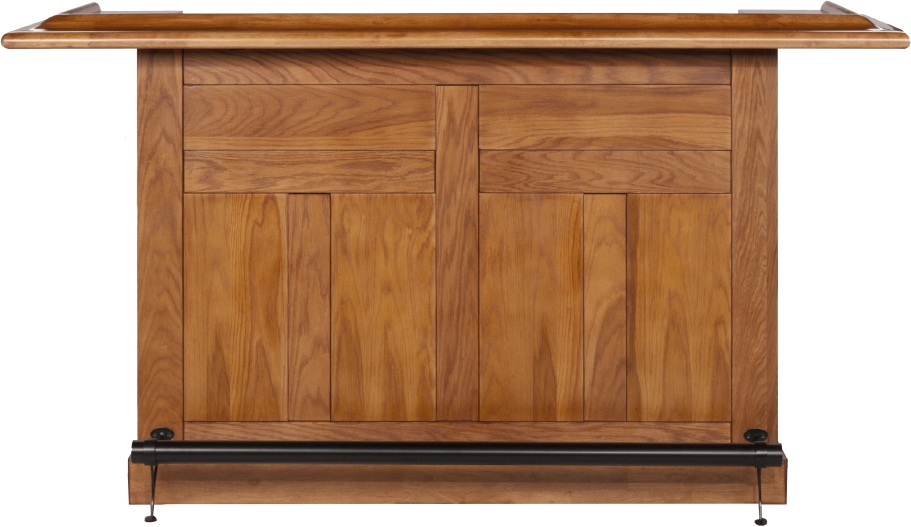 With a beautiful oak finish and black footrest, this bar has classic styling. The wine rack, which holds up to 12 bottles, cabinets and drawers provide ample storage space. Made of oak and oak veneers. The matching stools are the perfect fit into the bachelor or married man's home. Comfy padded tilt and swivel seats on the bar stool provide comfort for hours of continuous play.Read More