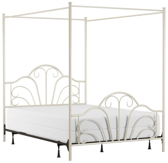 The Hillsdale Furniture Dover Canopy Bed is inviting and enchanting. This queen-size metal bed features a compound arch design that's adorned with modest metal scrollwork. The elegant cream finish is reminiscent of wrought iron and is a seamless fit with a variety of décor.Read More