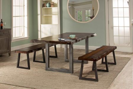Rustically finished and constructed from gray sheesam wood, the Emerson Dining Table is a conversation piece all its own. Naturally hewn edges elicit a sense of the natural in this unique dining table, which also highlights the beautiful wood grain of its source material. Classic, natural wood construction is the hallmark of the Emerson Natural Sheesham Bench. Constructed of natural sheesham wood, the thick bench lets the hue and character of the grain shine through its clean finish and weathered edges. It is paired with a simple metal base finished in a gray powder coat to ensure the bench is complementary to a variety of dining room décors.