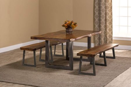 Rustically finished and constructed from gray sheesam wood, the Emerson Dining Table is a conversation piece all its own. Naturally hewn edges elicit a sense of the natural in this unique dining table, which also highlights the beautiful wood grain of its source material. Classic, natural wood construction is the hallmark of the Emerson Natural Sheesham Bench. Constructed of natural sheesham wood, the thick bench lets the hue and character of the grain shine through its clean finish and weathered edges. It is paired with a simple metal base finished in a gray powder coat to ensure the bench is complementary to a variety of dining room décors.