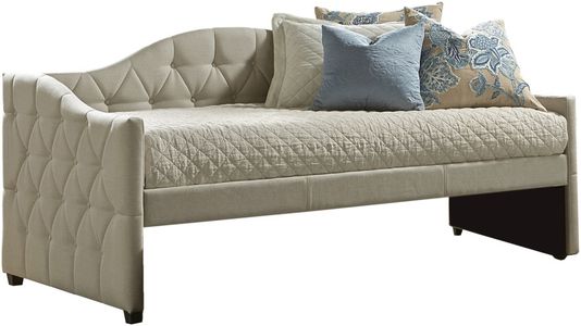 Classic bedroom design comes in a space-saving package with the Jamie Daybed. Finished in a goes-with-everything pillowed beige fabric, the Jamie Daybed adds extra sleep space and style all at once. An optional trundle is also available.