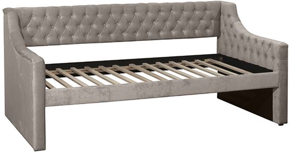 Inspired by settees and sofas of yesteryear, Hillsdale Furniture's Jaylen daybed boasts tight stitched button tufting, a gracefully sloped arm, and a classic squared silhouette. Upholstered in our classic silver hued fabric, and featuring a sturdy hardwood frame, the Jaylen daybed adds extra sleep or sitting space to your bonus room, kids' room, den or office. A standard sized twin mattress is all you will need to complete this ensemble.