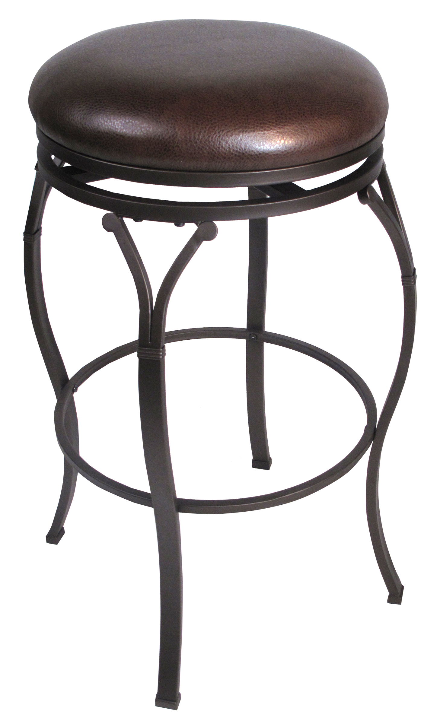 Comfortable, convenient and easy to stow away, the Lakeview backless barstools feature a pretty scrolled base, a coppery brown metal and a versatile and easy to maintain brown faux leather seat cover. These 360 degree stools are composed of heavy gauge tubular steel.