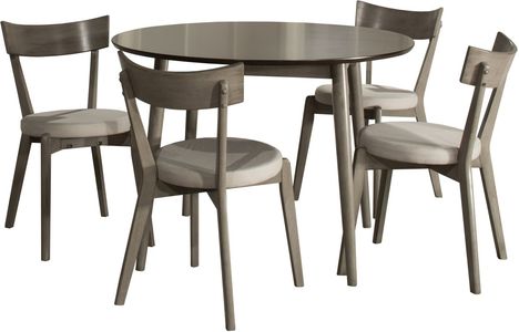 Mayson 5-Piece Round Dining Set with 4 Upholstered Chairs - Gray with Chocolate Finish TopRead More
