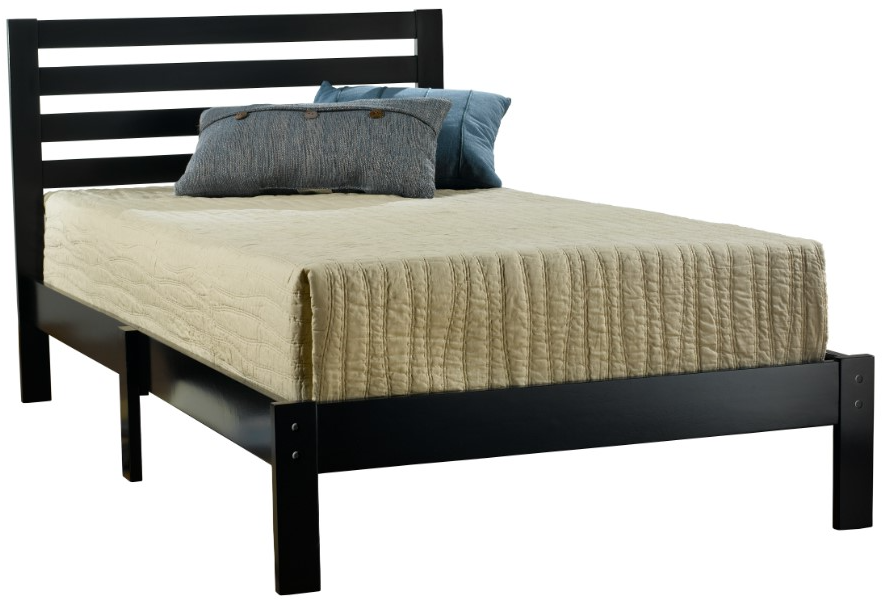 Available in black or white, Hillsdale Furniture’s transitional Aiden platform bed is perfect for a kids, teen or students room. A simple ladder back headboard and clean platform make this an easy fit into most decors. No frame necessary, this bed comes complete with everything you will need. Constructed from hardwood and wood composites. Assembly required.