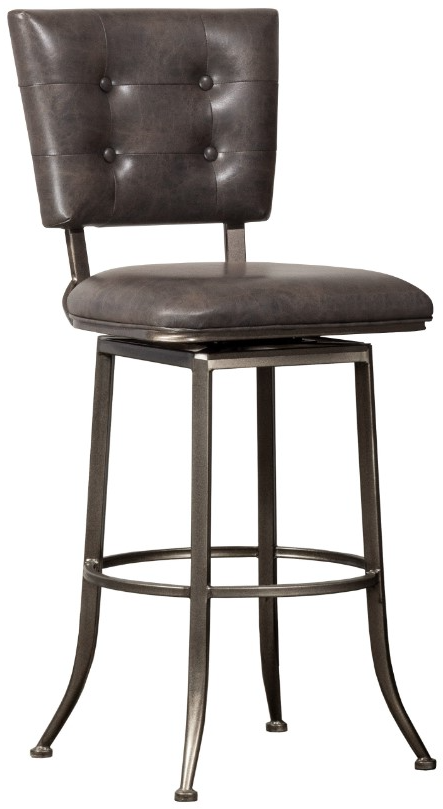 Swivel seat and back wrapped in charcoal gray faux leather