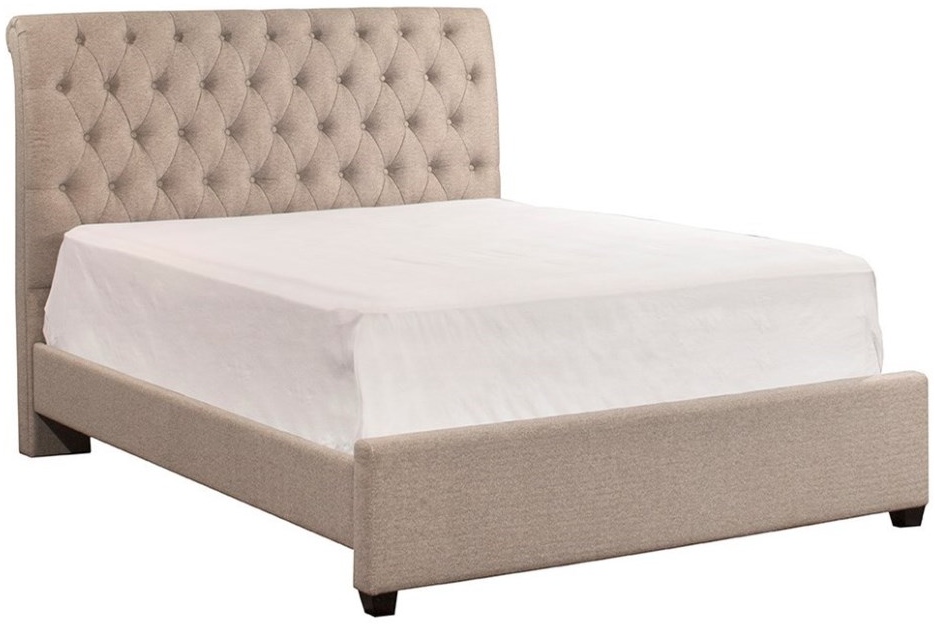 The Napleton King bed frame. Upholstered in natural herringbone and button-tufted for comfort.Read More