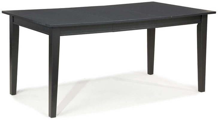 Dine with pride with the Dining Table by homestyles. Features solid hardwood construction with a rich black finish. The set has a minimalistic design, with a large, rectangular tabletop and tapered chair legs. The table includes a leaf, which can be extended for extra surface space.