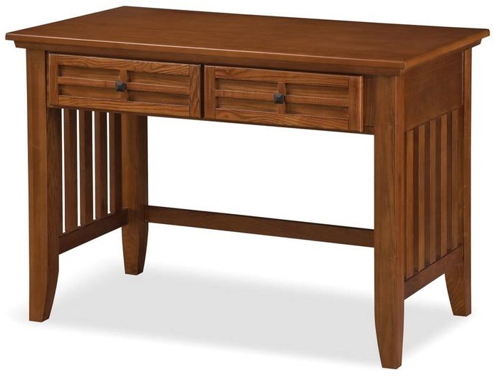 Timeless style and exceptional craftsmanship. This Arts and Crafts Desk by homestyles is constructed of solid oak and oak veneers in a warm, cottage oak finish with black-finished hardware. The desk features two framed drawers with raised wood, both with ample space. This desk will enhance any decor with its gorgeous tones and design, perfect for any room in your house. Comes carefully packaged with all items labeled and easy-to-follow assembly directions. Delivered to your door. Size: 30"H x 42"W x 24"D.