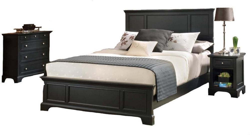 homestyles King Bed, Nightstand, and Chest are constructed of hardwood solids and engineered wood with a rich ebony finish. Bed features include raised panels on the headboard and footboard. Item includes King headboard, footboard, and rails. Item Size: 80.75w 87d 52h. Nightstand features include a storage drawer that measures 10.75w 10.75d 4h, and open storage area that measures 12w 14d 11.5h. Item measures: 18w 16d 24h. Chest features include four large drawers. Top drawer measures 28w 13d 2h the remaining drawers measure 28w 13d 6.5h. Item measures: 36w 16.5d 36h.