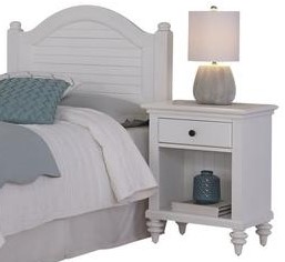 Inspired by the fusion of British traditional and old world tropical design, the Bermuda Two Twin Headboards and Nightstand Set by homestyles is constructed of mahogany solids and engineered wood in a refreshing, textured-brushed white finish. Further inspiration can be found in the shutter style design, turned feet, and antique brushed nickel hardware. The headboards accommodate a twin-sized mattress and box spring (frame not included). The nightstand features a storage drawer and lower storage area. These twin headboards and Nightstand would make a perfect addition to a guest room or teen bedroom. Set includes two headboards and a nightstand. Finish and measurements may vary slightly. Assembly required.