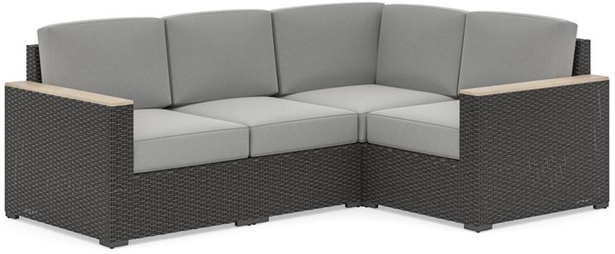 With its thick weave and elegant color, the Boca Raton collection captures the organic beauty of rattan. This four-seat sectional consists of two corner chairs and two armless chairs that can be arranged in multiple configurations, both indoors and outdoors. The worry-free design features weather-resistant rattan, fade-resistant cushions, solid wood Acacia arms, and a sturdy steel frame. Extra deep seats make it easy to find your ideal posture.Read More