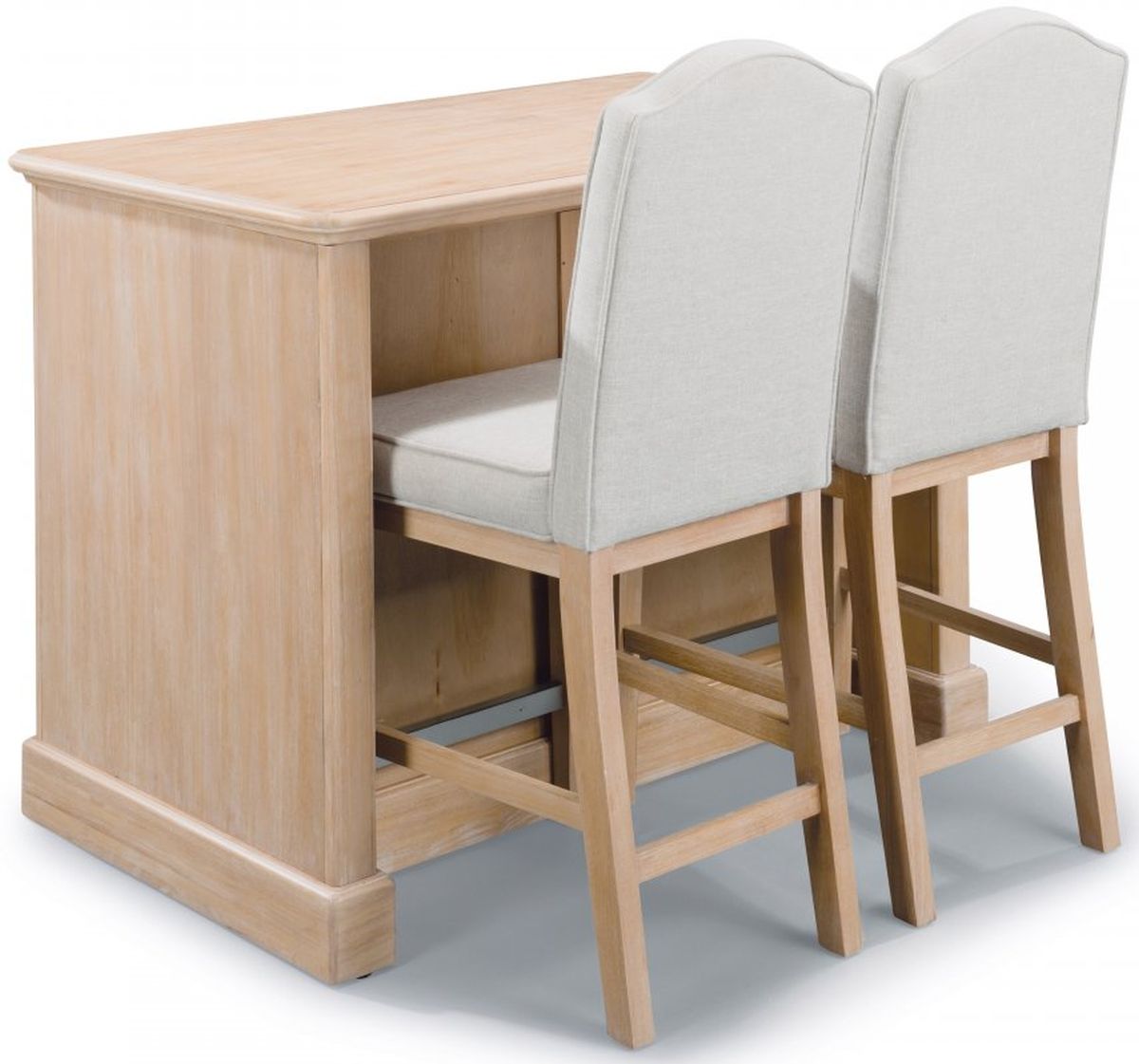 Bringing a bit of traditional countryside to your kitchen the Claire Kitchen Island and Counter Stools blends classic style with a modern touch. The upholstered seat and back and unique whitewashed finish plays well with almost any aesthetic. The island offers spacious storage options, allowing you to make the most of the space in your kitchen. Available as shown or sold independently the Claire group is part of a whole home solution offering timeless style for your space.