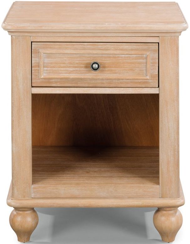 Bringing a bit of traditional countryside to your sleep space, the Claire Night Stand blends classic style with ample storage. The unique whitewashed finish plays well with almost any aesthetic and its subtle nature makes personalization easy. Available as shown or as a compliment to other items in this collection the Claire group is part of a whole home solution offering timeless style for your space.