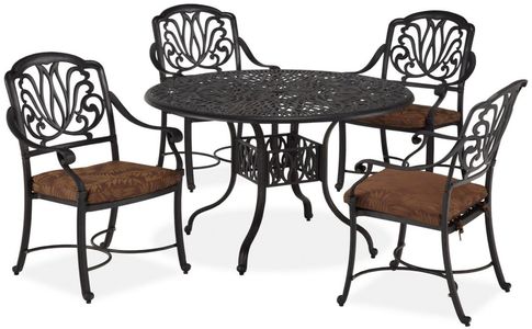 Bring a garden party to your outdoor spaces and bring outdoor living to life. This Capri 5-piece dining group includes a 42"D table and four arm chairs with cushions. The table is made of cast aluminum with a powder-coated finish.Read More