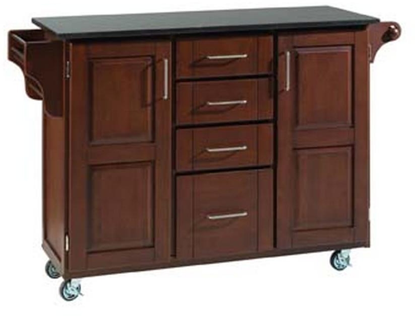 Create a stylish statement with the Create-a-Cart Kitchen Cart by homestyles. This versatile kitchen cart features a handsome cherry finish and a black granite surface, which is ideal for preparing and serving meals.Read More