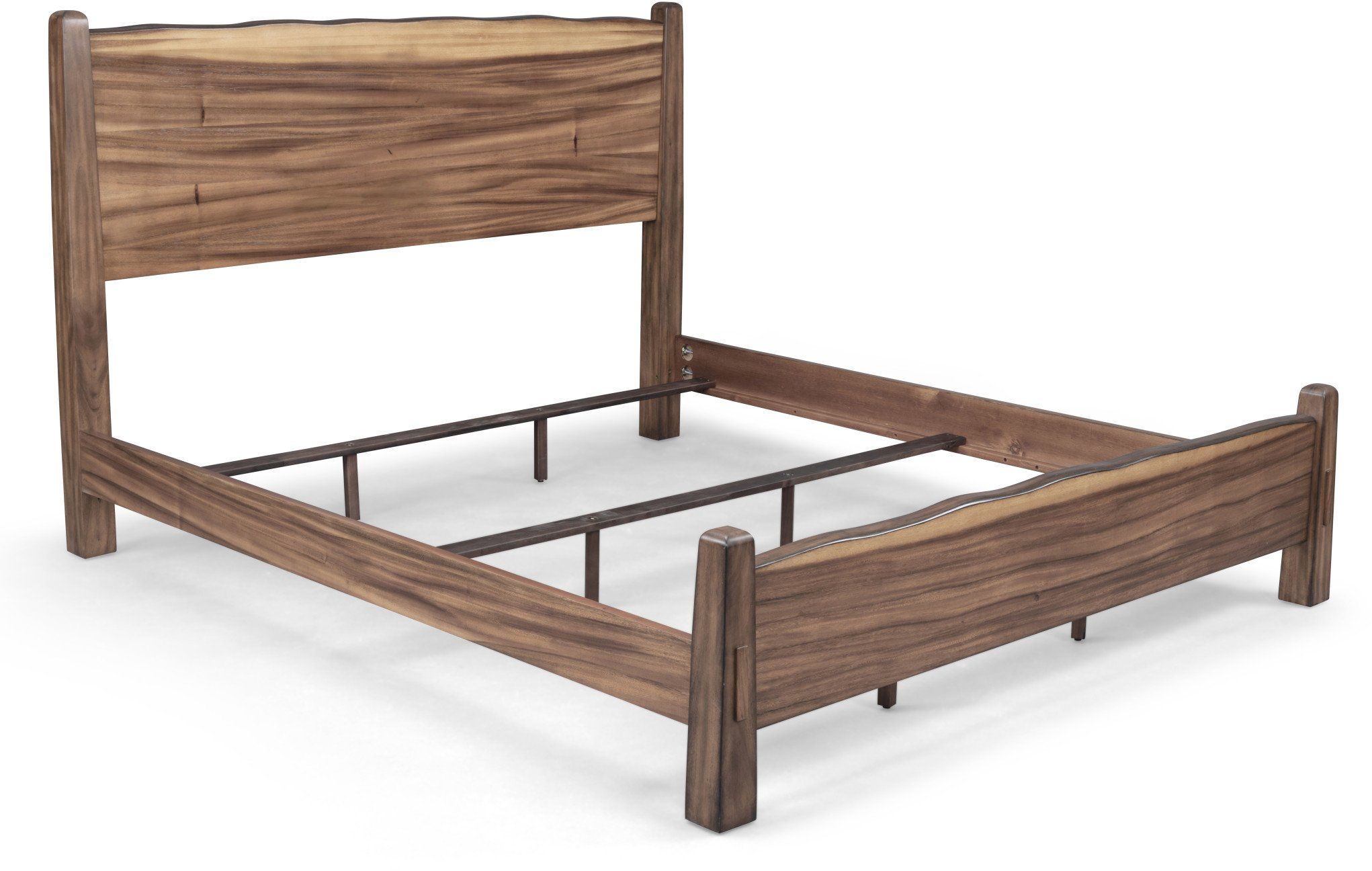 Inspired by the tropical rain forest, the Forest Retreat King Bed captures the alluring look of a live edge design for a natural-looking rugged elegance. Crafted from tropical grained wood veneers over engineered woods, this bed is finished with a natural teak look that provides the dramatic light to dark grain pattern. Simple yet striking, it complements a wide array of styles ranging from modern rustic to relaxed retreat. Part of a whole home solution, the Forest Retreat King Bed transforms your space into an inviting haven.