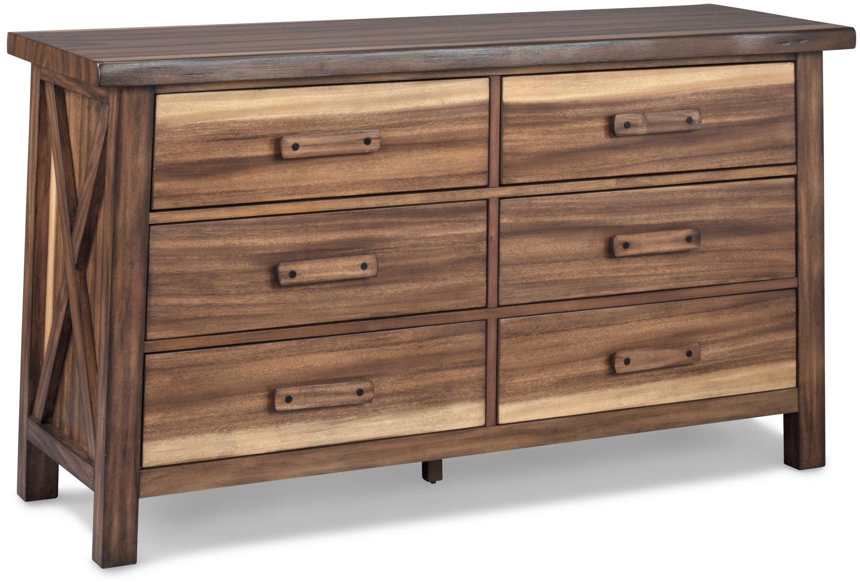 Inspired by the tropical rain forest, the Forest Retreat Dresser captures the alluring look of a live edge design for a natural-looking rugged elegance. Crafted from tropical grained wood veneers over engineered woods, this piece is finished with a natural teak look that provides the dramatic light to dark grain pattern. Simple yet striking, this dresser complements a wide array of styles ranging from modern rustic to relaxed retreat. Part of a whole home solution, the Forest Retreat Dresser transforms your space into an inviting haven.