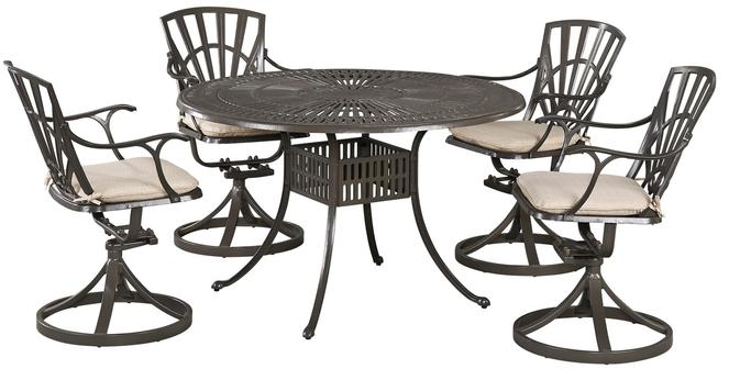The Grenada Patio Collection will help you create paradise in your own backyard. This 5-piece dining group includes a 48"D table and four swivel chairs with cushions to bring any small group closer together.Read More
