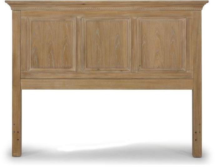 Traditional design with a hint of contemporary. The Manor House Queen Headboard by homestyles is crafted from wire-brushed hardwood solids with an aged waxed, white oak finish. The headboard has a three center panel feature with a piano molding under the molded top. The headboard attaches to most meta bed frames. Hardware is not included. Note finish and measurements may vary slightly. Assembly required. Arrives at your door by parcel delivery service.