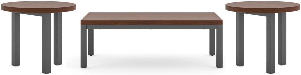 Set up an entire living room, private office, or any other room with this Homestyles Merge 3-Piece Set including a Coffee Table and two End Tables. The post legs on each table support a top finished in walnut veneer for a clean, modern look. The compact size of this set is the perfect addition to smaller spaces, and can be easily moved around to round out any seating arrangement. The lacquer top coat protects the finish and creates totally worry-free ownership.Read More