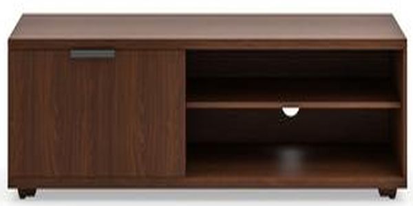 Bring family and friends together around this Homestyles Merge Entertainment Console. This multipurpose storage solution gives you both open and closed storage, and the top is perfect for supporting flat screens of all sizes. Bring more organization and style to your living room, office space, or any other room. The lacquer top coat protects the finish and creates totally worry-free ownership.Read More