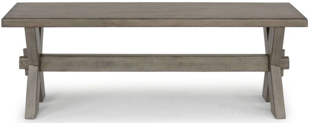 Rustic casual design that is at home in a mountain lodge, as it is in a mid-town loft. Crafted of hardwood solids and engineered woods. Top is wire brushed to provide a rough-hewn look. Finished in a multi-colored gray that provides unique high lighting to the design. Authentic trestle table style construction with “X” frame legs. Note finish and measurements may vary, assembly required.