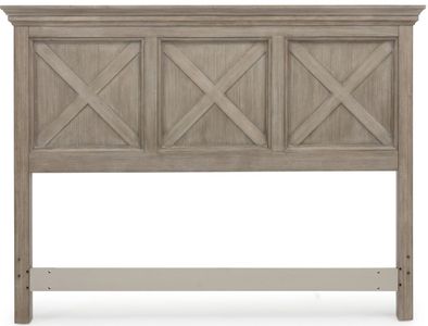 Rustic casual design that is at home in a mountain lodge, as it is in a mid-town loft. Crafted of mahogany solids and veneers with engineered woods, that features solid wood “X” frame design, with inset wainscot panels, with all surfaces wired brushed to provide a rough-hewn look. Finished in a multi-colored gray that provides unique high lighting to the design. Headboard features large shaped solid wood molded top. Can be attached to either a Queen or Full-size bed frame. Hardware not including for attaching to bed frame. Note finish and measurements may vary, assembly required. W-66 ¾”, D-4”, H-50”.