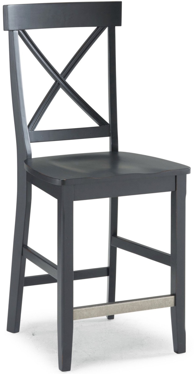 Kick back in your dining room or kitchen with the Nantucket Counter Stool by homestyles. This stool features a laid-back design, with its traditional "X"-back and slightly flared legs. Its seat features a carved, shaped surface for added comfort. This stool is made from high-quality solid hardwood to guarantee lasting durability. It also features a front rail with a metal cap for extra strength. Black painted finish with hand-rubbed wainscot panels and edges, which show a hint of the contrasting base coat for aged effect. Stool measures 44.75"H x 19.25"W x 21"D. Comes carefully packaged with all items labeled and coordinating easy-to-follow assembly directions.