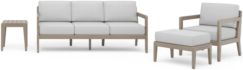 Any outdoor space becomes a desirable destination for entertaining or relaxing with this Homestyles Sustain 4-Piece Outdoor Set. Create a casual seating arrangement for up to four people with a sofa, lounge chair, ottoman, and a side table.Read More