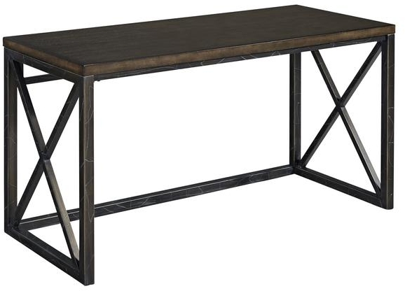 Contemporary design partners with simplicity and function in this Xcel Desk by homestyles. The surface is crafted of mahogany wood veneers over an engineered wood core in a cinnamon-colored finish. A metal tube frame in a distinctive, aged copper powder-coated paint finish has raised abstract gold highlightingRead More