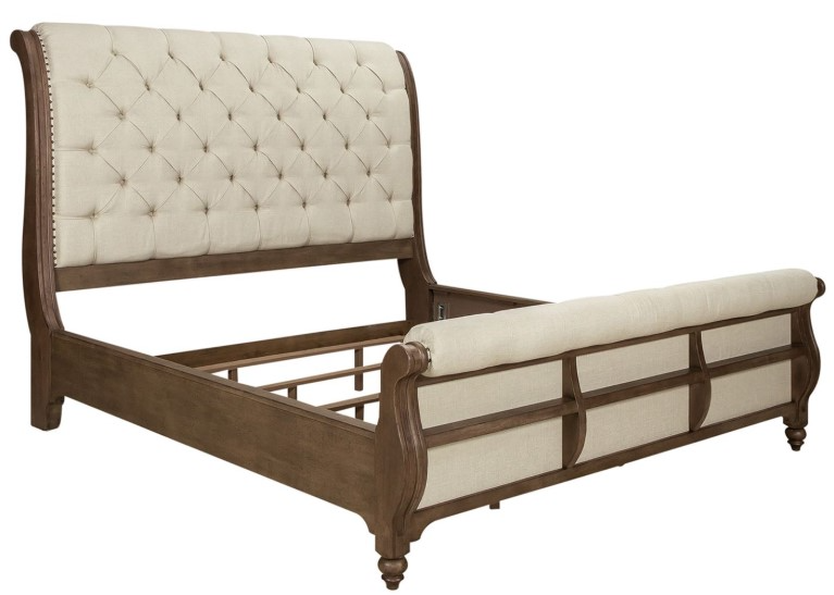 When details matter, choose the Americana Farmhouse king sleigh bed. Crafted of poplar solids with white oak veneers, this bed features a wire brushed dusty taupe finish with worm hole distressing.Read More