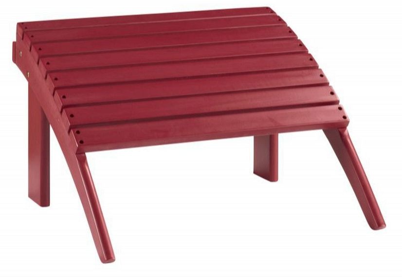 A classic Adirondack plank design and vibrant red paint finish gives this ottoman a timeless appeal that brightens any indoor or outdoor setting. Solid wood construction gives this piece long-lasting durability while the simple design ensures comfort when paired with an Adirondack chair. Available in multiple colors, this piece brings a classic pop of color to any space.