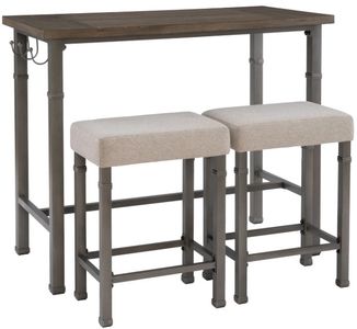 Rustic and industrial in style and design, this three piece faux leather set is perfect for small dining rooms and kitchen breakfast nooks. Crafted from metal, the base of the table features a black or pewter finish and decorative metal trim accents.Read More