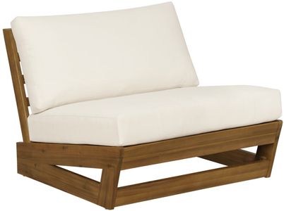 Sleek, sculptural, and designed for relaxation, this armless chair adds a modern edge to any open-air setting. Crafted from solid acacia wood with a warm teak-toned stain, the angular frame emphasizes clean lines while naturally standing up to the elements.Read More