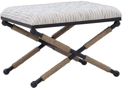 A perfect mix of texture, comfort, and laid-back charm, this bohemian stool brings effortless personality to any space. The cushioned seat is upholstered in a woven cotton blend in beige with tight black stripes, bringing a worldly, artisanal feel.Read More