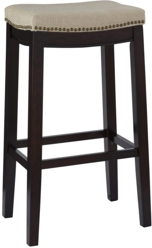 Chic and stylish, the Hampton Fabric Top Stool is perfect for adding seating to any high top table or bar space. The dark walnut finish is accented by the beige linen upholstered seat. Decorative bronze nail heads finish the stool adding interest to the piece.Read More