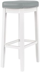 Timelessly elegant, this barstool steals the show with its tailored details and soothing colorway. The contoured saddle seat, upholstered in light-grey faux leather, provides plush comfort with a refined aesthetic. Silver nailhead trim and double-needle stitching exemplify the sophisticated, modern farmhouse aesthetic, striking a chic yet modest tone.Read More