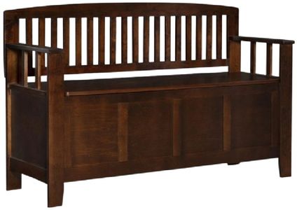 Create added seating and storage to your foyer or mudroom with this attractive and functional Cynthia Storage Bench. The bench features a flip top lid, allowing the user to easily retrieve articles from the storage compartment. The slat designed back and sides are enhanced by the walnut finish.Read More