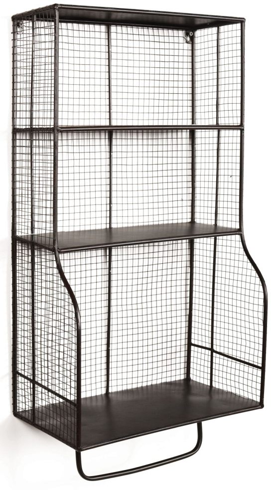 Add stylish storage to a bathroom, kitchen, office or entry with the Distressed Wall Storage Organizer. The rustic distressed grid style metal will easily complement any decor style. Three shelves provide ample space for storing and displaying a variety of items. A bottom bar is perfect for hanging towels. A versatile storage addition for any area.Read More