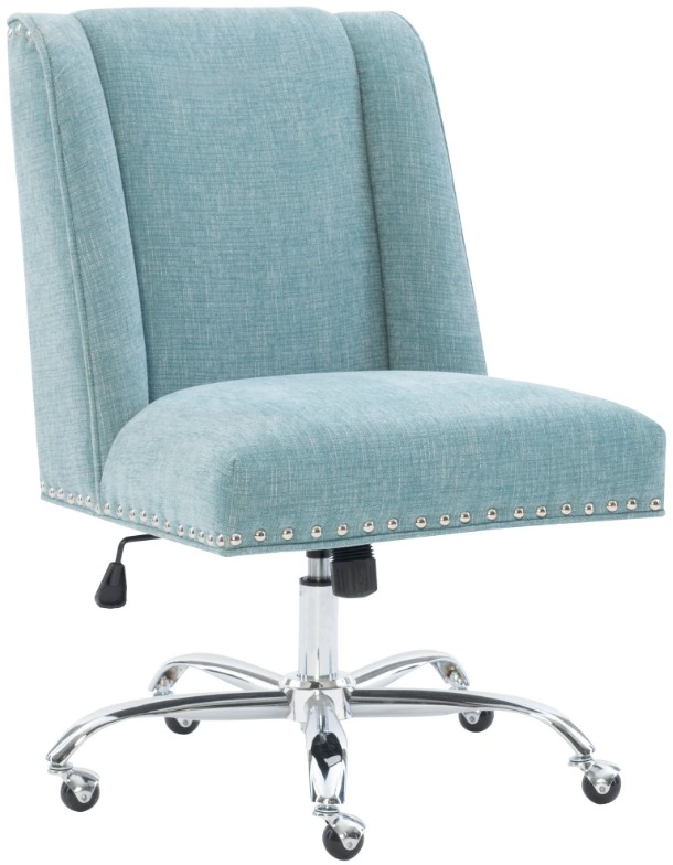 Add style and function to your office with this office chair. The soft, plush frame is upholstered in multiple fabric options and features a square back. Silver nail heads accent the chair. A chrome base has metal casters for ease of mobility. Perfect for a home work space or the office.Read More