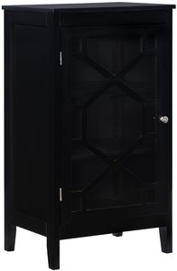 Why sacrifice style when adding storage space to your home? This lovely cabinet offers a clean-lined design in a versatile solid black hue. The cabinet front features glass with a pane overlay and a sleek silver pull which opens to reveal two tiers of interior shelving space.Read More