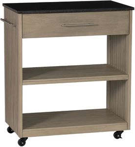 The black granite stone top offers a durable surface with a 100lb weight capacity, perfect for meal prep or displaying your favorite kitchen essentials. A towel rack and drawer handle enhance its polished, streamlined look, while the open slatted shelving provides practical storage for cookware, ingredients, or decor. With two 360° swivel casters and two locking casters, this cart moves effortlessly wherever you need it and stays securely in place. Perfect for adding extra workspace or serving with style, this grey kitchen cart brings modern charm and functional elegance to your space.