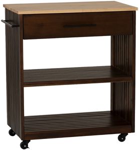 Add warmth and practicality to your kitchen with this beautifully crafted walnut-finished kitchen cart. It's constructed from durable acacia and rubberwood, ensuring long-lasting strength. Finished in a rich walnut lacquer, this cart radiates timeless elegance, perfect for complementing traditional or modern spaces.Read More